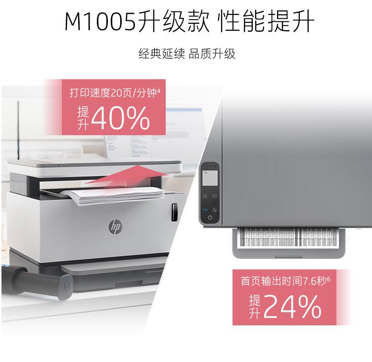 HP/惠普 Laser NS 1005W 創(chuàng)系列 智能閃充大粉倉一體機 無線激光多功能 無線打印復(fù)印掃描三合一